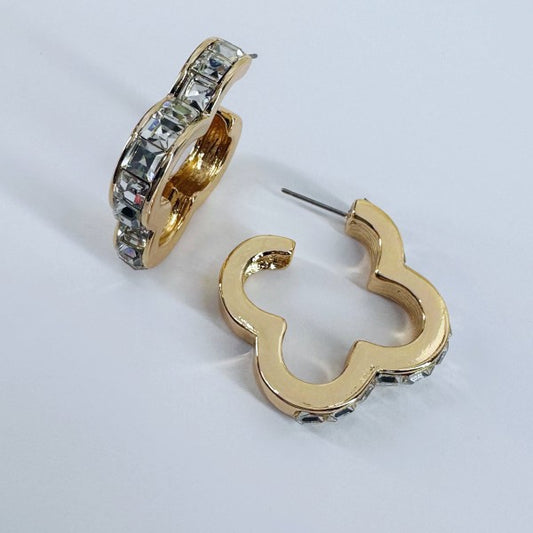 Post Back Clear Rhinestones Clover Earrings